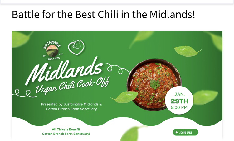 Benefits the Cotton Branch Farm Sanctuary. Sponsored by Sustainable Midlands and Cotton Branch Farm Sanctuary